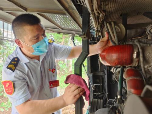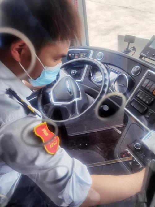 新區(qū)公司1780車駕駛員白延奇駕駛的19路線,由銅山新區(qū)總站發(fā)往徐州火車站,全程接近30.5公里,途徑居民區(qū)、學(xué)校眾多,每天要跑3趟,6個單程,不堵車的時候一個單程需要一個小時。“由于工作的特殊性,即便天氣再熱我們也不敢多喝水,早晚高峰堵車至少得1個多小時才能回到主站,只有到終點站才能多喝幾口水,抓緊時間上個廁所。”駕駛員白延奇這樣說道。為了給市民乘客提供溫馨、舒適的車廂環(huán)境,每天朝陽還未升起,白延奇就到達(dá)停車場,檢查車輛狀況、擦拭發(fā)動機(jī)、刷洗輪胎、打掃車輛衛(wèi)生,在確?!拔鍍粢涣痢钡耐瑫r,對車廂進(jìn)行全面消毒,不一會,白延奇的額頭就布滿了汗珠,身上的行業(yè)服早已濕透,緊緊地貼在皮膚上。