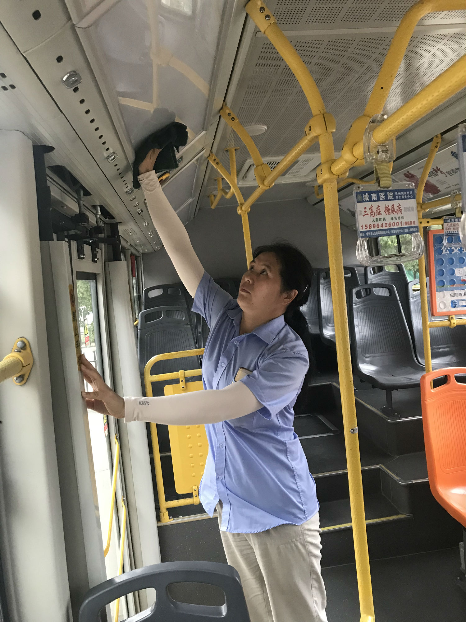3路的駕駛員,見到權(quán)洪都親切地喊“權(quán)大姐”。問起327臺(tái)車41名駕駛員,沒有一個(gè)人、沒有一臺(tái)車沒被權(quán)洪幫扶過的,大家剛開始,不少人存在畏難情緒,認(rèn)為客觀條件這么差,車輛衛(wèi)生差不多就行了。權(quán)洪沒有退卻,而是帶頭主動(dòng)和駕駛員一同去打掃,每天幫扶,清理衛(wèi)生死角,長(zhǎng)期的朝夕相處,贏得了大家的尊重。