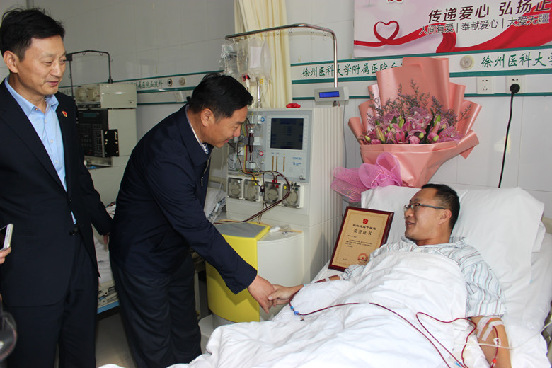 自7月底接到通知的這段時間,鄭剛一直積極配合著,希望保持最佳的身體狀態(tài)進(jìn)行捐獻(xiàn)。他努力克制自己,戒煙戒酒,鍛煉身體,增加高營養(yǎng)的飲食調(diào)理。喝不慣牛奶的他甚至強(qiáng)迫著自己一天喝兩包奶。國慶節(jié)幾天,他突然感冒發(fā)低熱,竟忍著沒敢吃藥……鄭剛所在的單位也給予了大力的支持和配合,10月25日入院,徐州公交為他舉辦了隆重的歡送儀式,董事長、總經(jīng)理杜紅軍等領(lǐng)導(dǎo)給他送來了慰問金,安排好他的休息時間。