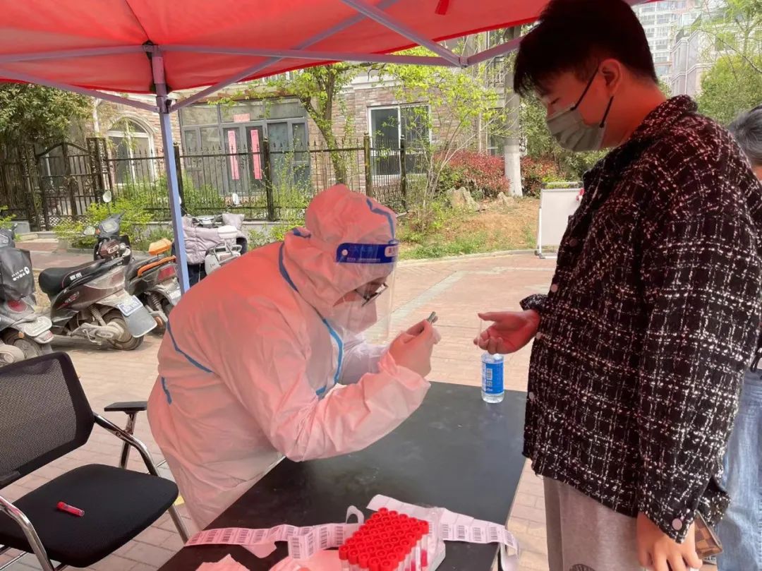 4月7日起,我被安排到社區(qū)進(jìn)行核酸采樣信息錄入,換上防護(hù)服,經(jīng)過簡單的培訓(xùn),即刻“變身”成了核酸檢測信息員。第一次穿上“大白”的衣服,心情忐忑緊張,既要保證登記無誤,還要高速有效,我在手上反復(fù)操作測試。在錄入過程中很多學(xué)生沒有身份證,需要手動錄入,但帶著防護(hù)面罩經(jīng)常起霧,要反復(fù)確認(rèn);穿著防護(hù)服,不能喝太多水,也不敢去廁所,因為防護(hù)服脫下來就要重新?lián)Q一套新的……一天連續(xù)工作了8個小時,全身衣服濕透,摘下防護(hù)面罩的時候真是像脫了一層皮,渾身像散了架一樣。但是與始終奮戰(zhàn)在社區(qū)防控第一線,每天只睡了3、4個小時的社區(qū)書記鄧巖相比,我所做的微不足道。聽到社區(qū)的鄰里對我說的一聲聲“感謝”,那一刻我感到自己所做的一切都是值得的。