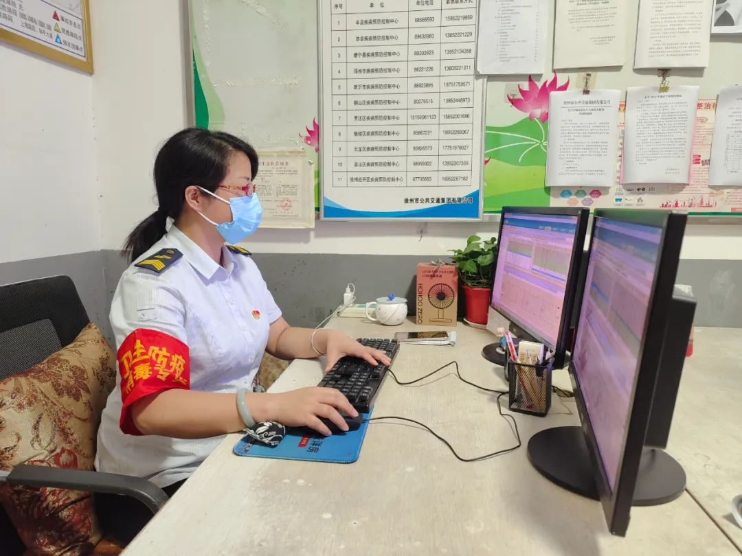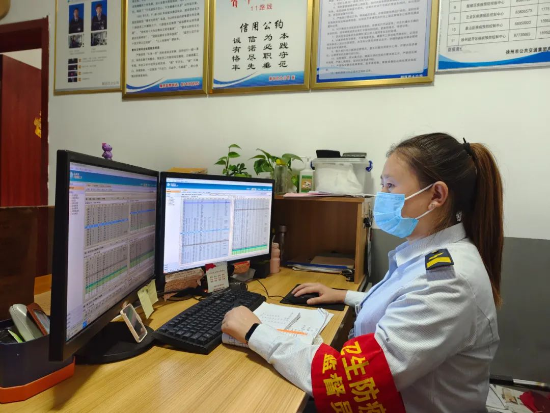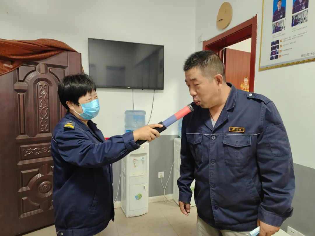 天還未亮,19路調(diào)度室里燈火通明,調(diào)度員黃靜已經(jīng)打開電腦開始了一天的工作,駕駛員陸續(xù)到達,車隊運管員鄒晶一邊叮囑著駕駛員安全注意事項,一邊對其進行酒精測試,一切井井有條,忙而不亂。首班車駕駛員紀(jì)彤仔細檢查車況、消毒、通風(fēng)等情況,車上、車下絲毫不敢疏忽,做好出車前的準(zhǔn)備。