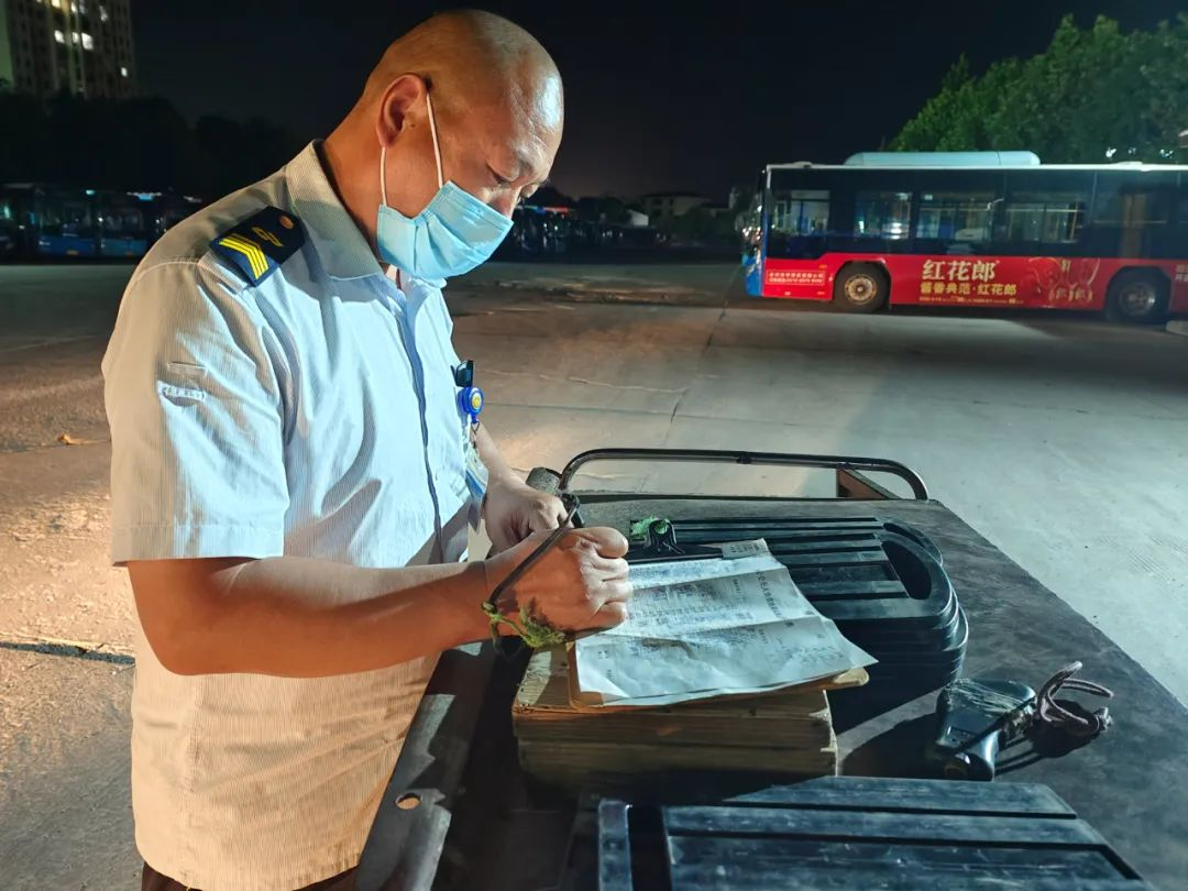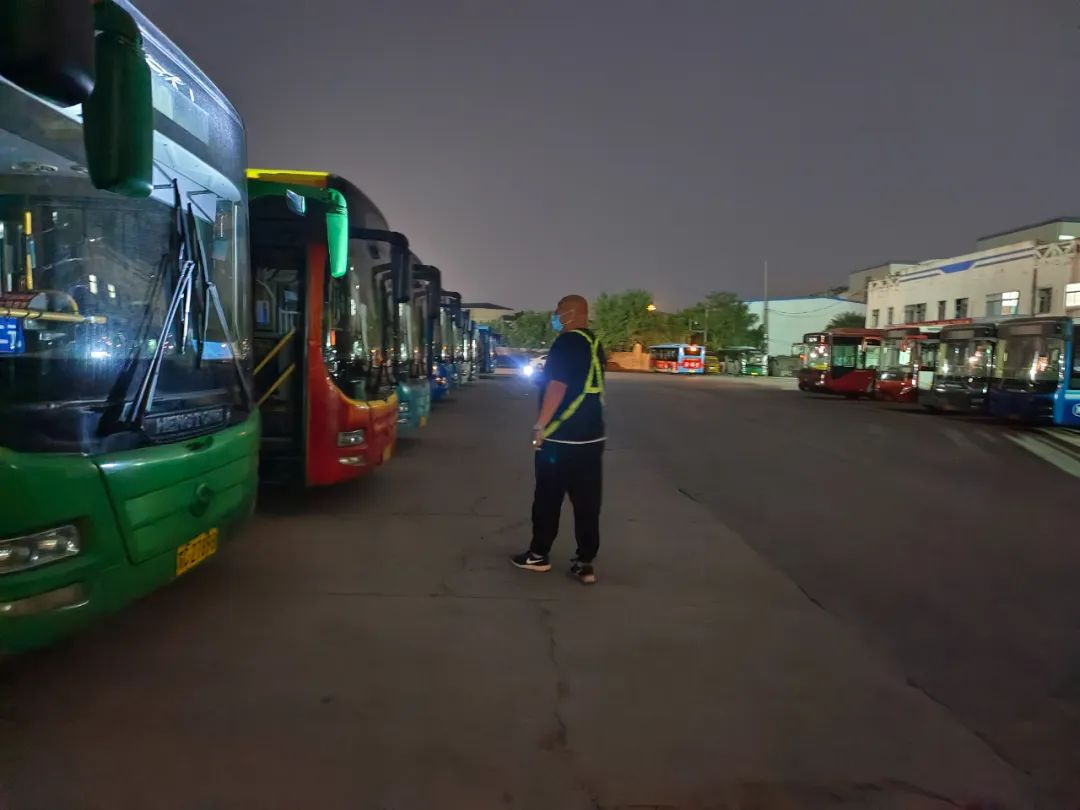 進入丑時,許多人都已進入夢鄉(xiāng),末班車回場,在萬籟俱靜的夜里,內(nèi)保員徐智指揮倒車,同時還要逐個檢查停車場內(nèi)的車輛擺放,匯報車輛歸場情況,確保車輛全部安全歸場。