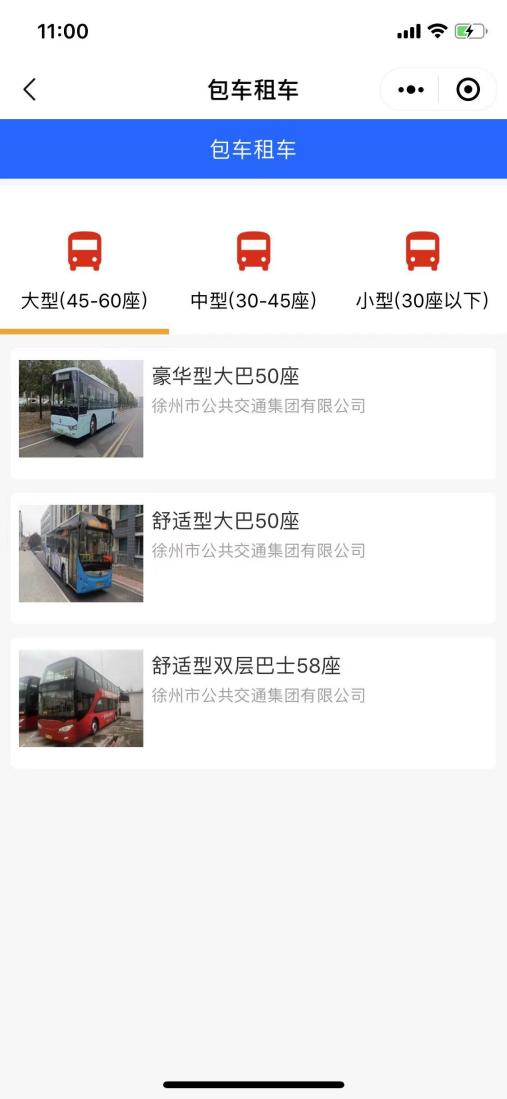 微信小程序操作流程:乘客可以在微信---發(fā)現(xiàn)---小程序功能中搜索徐州公交包車,即可找到對(duì)應(yīng)的微信小程序。點(diǎn)擊公交包車進(jìn)入包車頁(yè)面,選擇需要的車型。