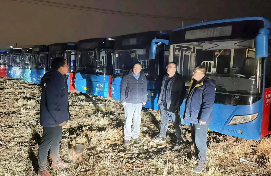 為進(jìn)一步做好春節(jié)期間公交停車場夜間安全保障工作,1月21日農(nóng)歷除夕夜,公交集團(tuán)黨委委員、副總經(jīng)理丁玉華帶領(lǐng)安全環(huán)保部、服務(wù)督導(dǎo)隊(duì)、8家運(yùn)營公司安管人員分9組對集團(tuán)55個(gè)車場進(jìn)行夜查,進(jìn)一步夯實(shí)安全生產(chǎn)基礎(chǔ),消除各類安全隱患,確保春節(jié)期間后方停車場車輛停放安全,保障市民安全舒適便捷出行。