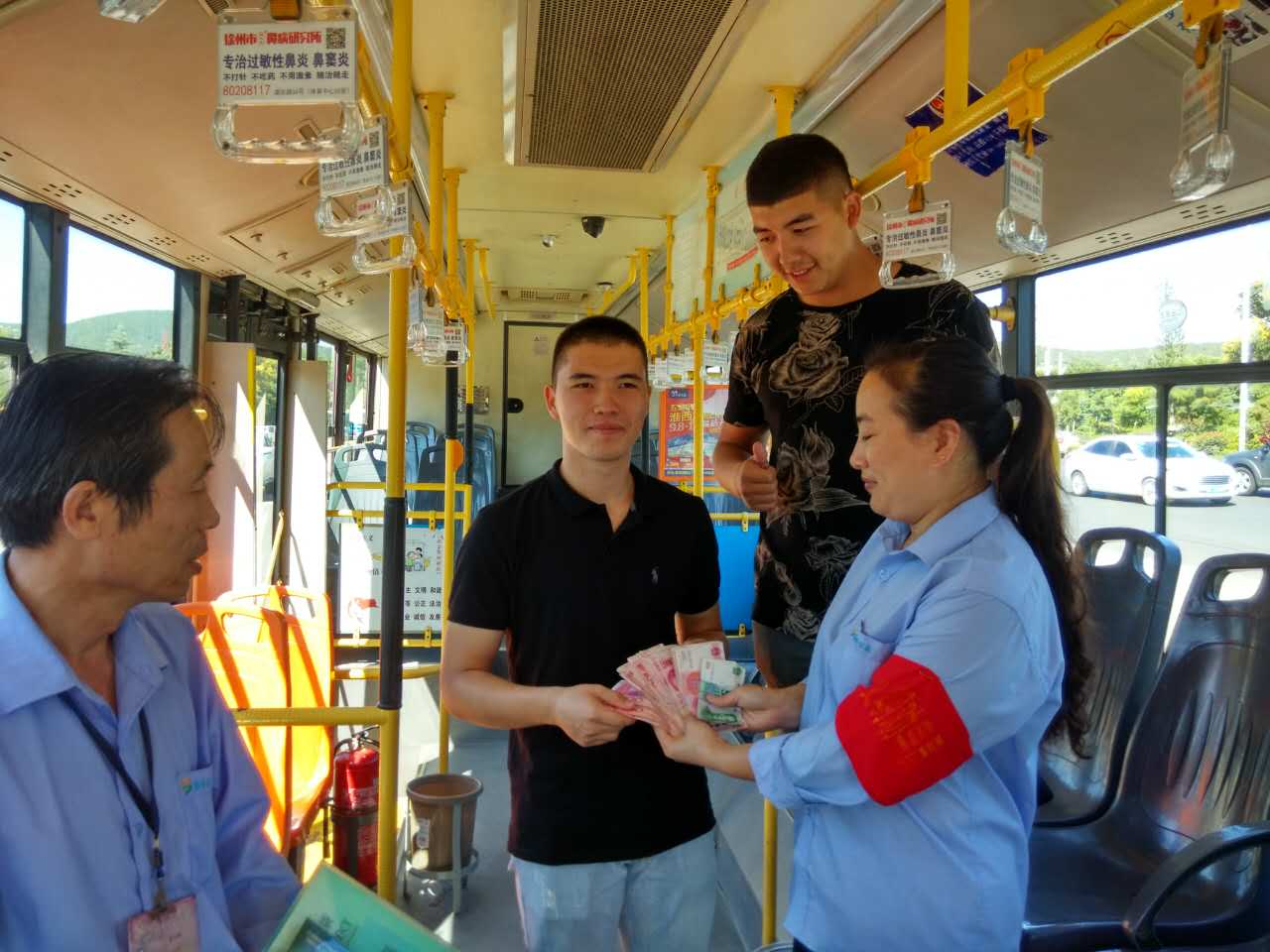 9月14日6點(diǎn)半左右,一位熱心市民在蘋(píng)果匯鄰灣站臺(tái)撿到一個(gè)文件袋交到游一路駕駛員張欣手中,文件袋內(nèi)裝有一本護(hù)照、一本學(xué)生證,人民幣4150元、美元450元。張欣把車輛駛?cè)氲V大南湖校區(qū)把文件袋交到夜間內(nèi)保人員手中并聯(lián)系車隊(duì)長(zhǎng)說(shuō)明情況。9月15日,游一線路長(zhǎng)王景文在多方聯(lián)系下找到了失主,失主是一名烏茲別克斯坦留學(xué)生,在礦大上學(xué),拿回文件袋失主表示自己真是太幸運(yùn)了。